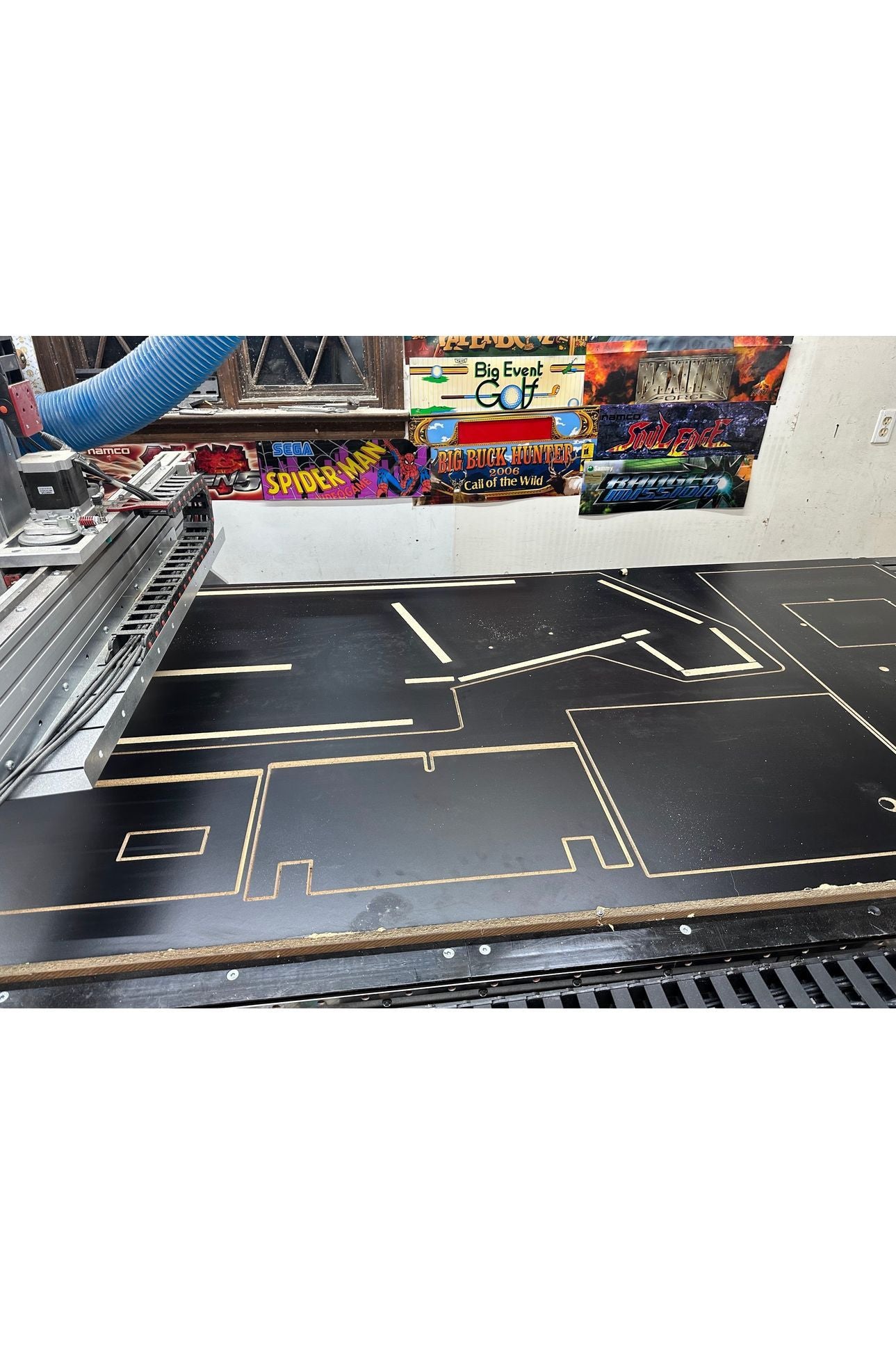 Professionally CNC’d cabinet, fully assembled, cleated complete in cab, all holes drilled, ready to be primed/sanded/painted. ** What’s not included: Artwork, T-Molding, Hardware, Coin doors, Control Panel, Cup Holders, Brass Hardware, etc... (NO GUTS, JUST A CABINET!) **